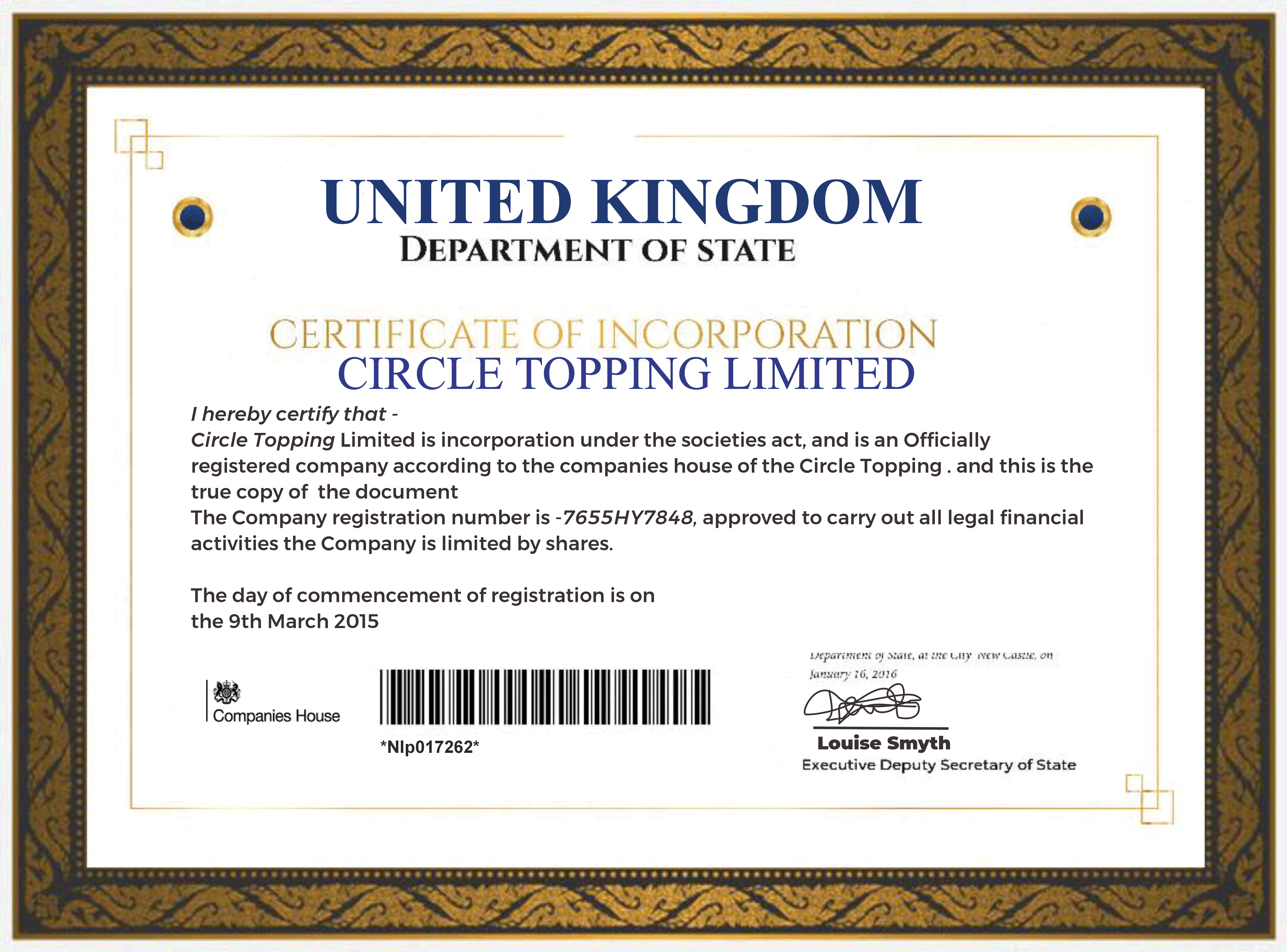 COMPANY CERTIFICATE
